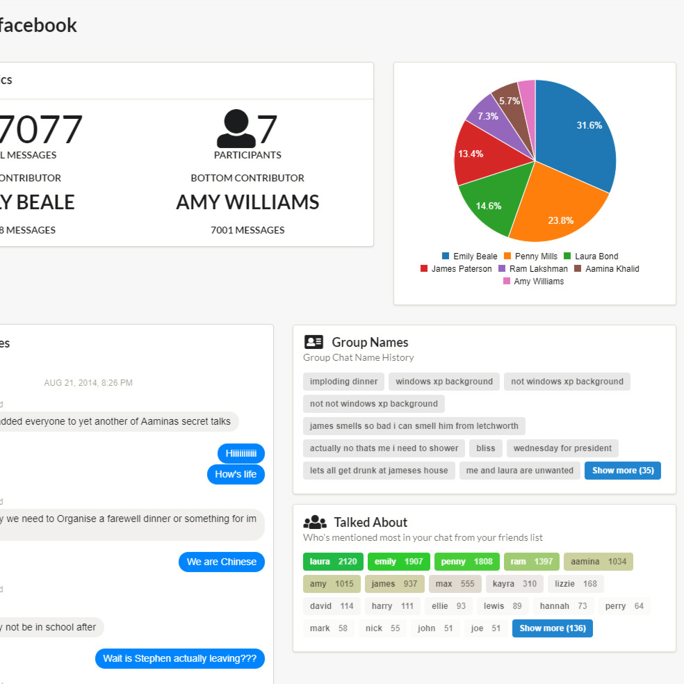 EffBee Analyser is a multi platform program that allows you to easily analyse your personal Facebook information.
