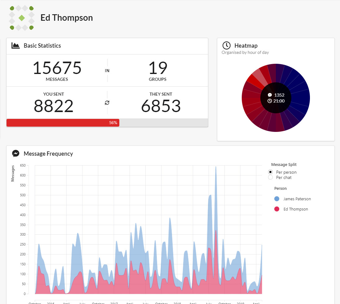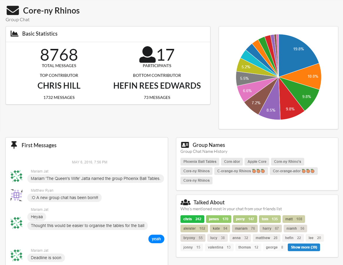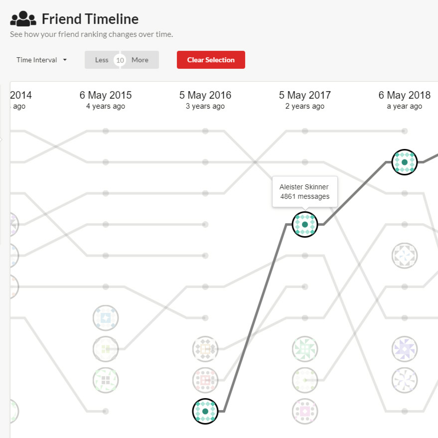 Glad you asked! EffBee is a downloadable program that takes as an input your Facebook archive, and produces a set of great visualisations that you can browse at your leisure. It was created as a masters project by James Paterson, which aimed to explore the ways that access to visualisations like this can affect social behaviour. Here's a quick list of the things that it can do: